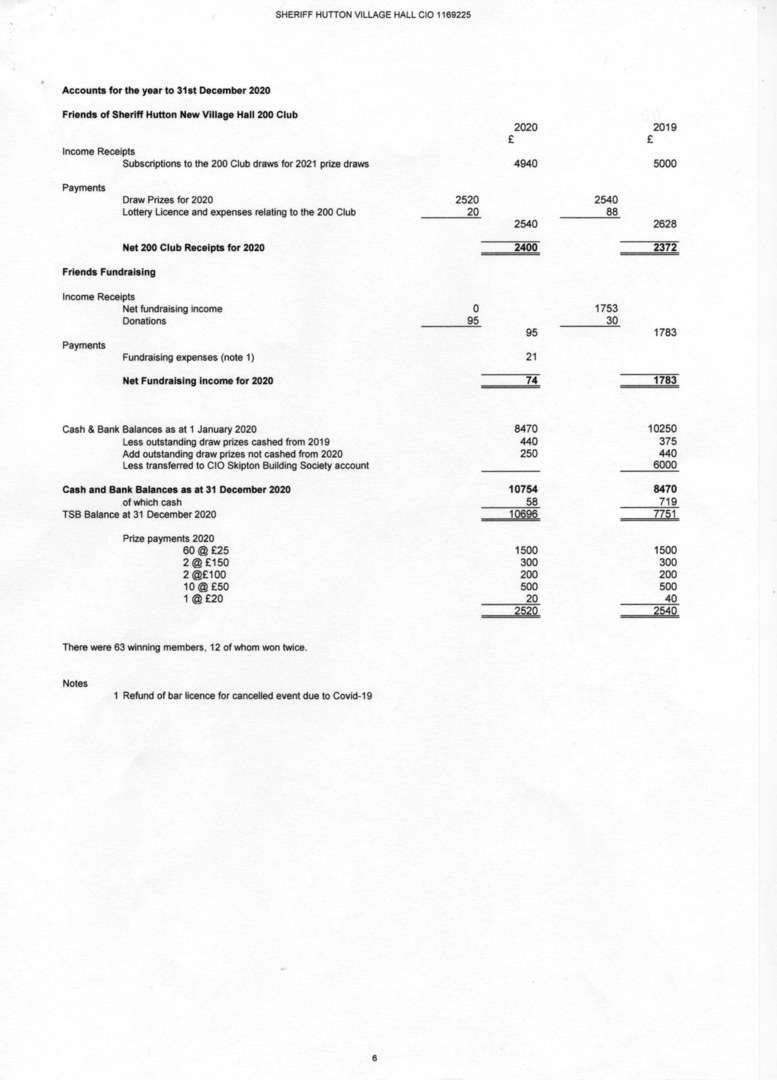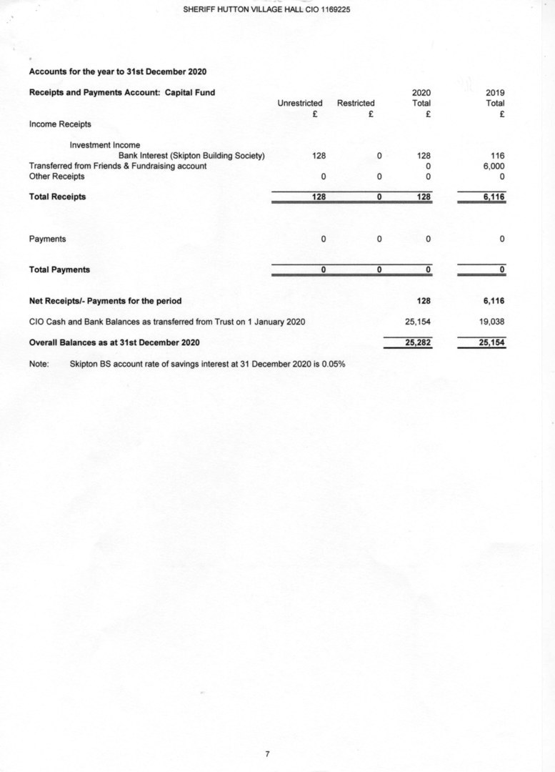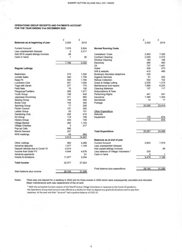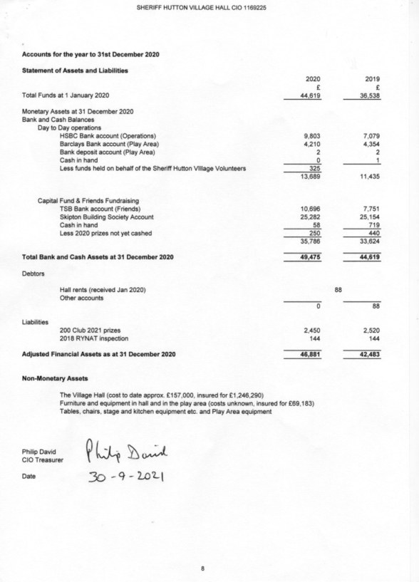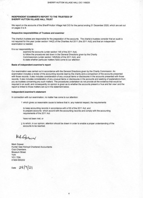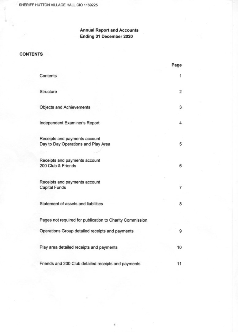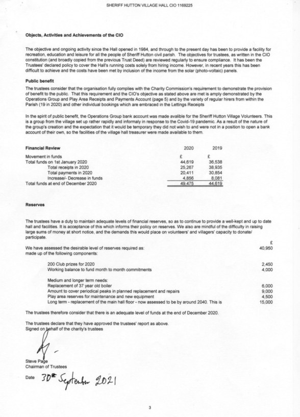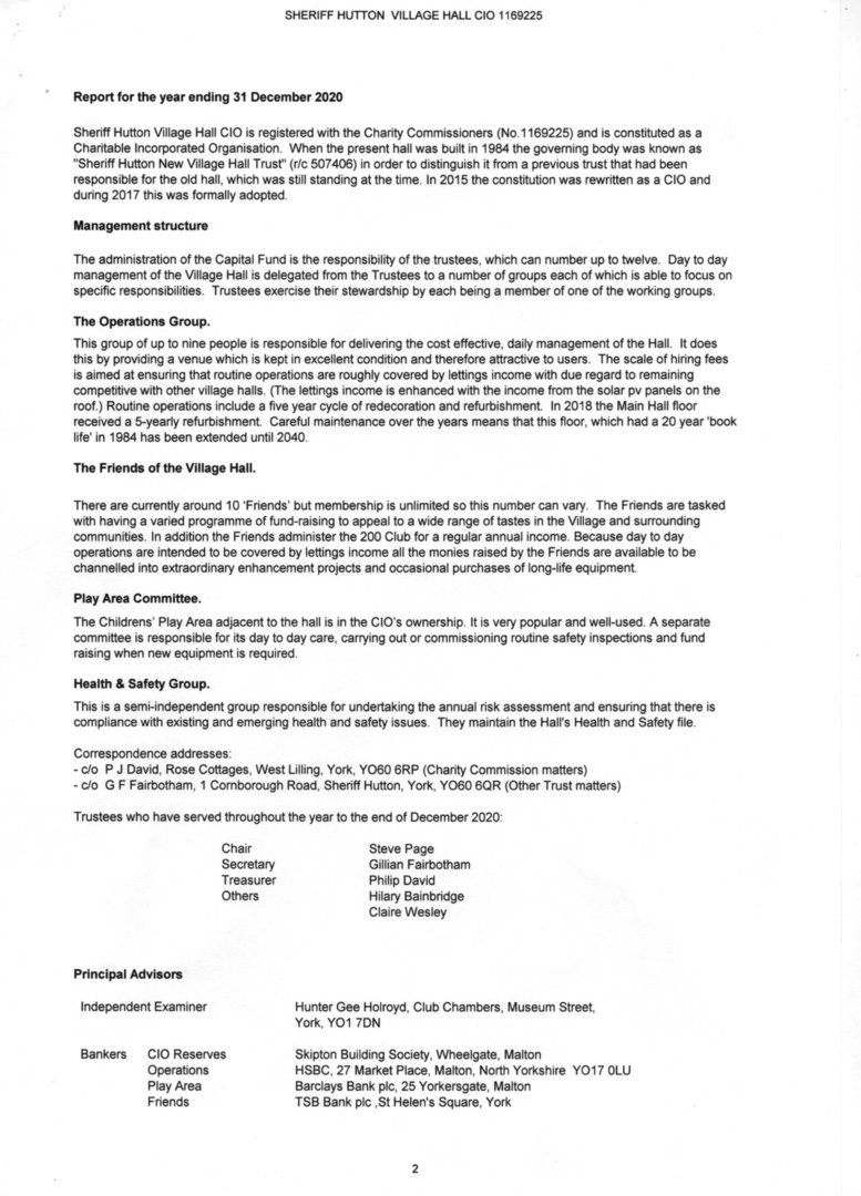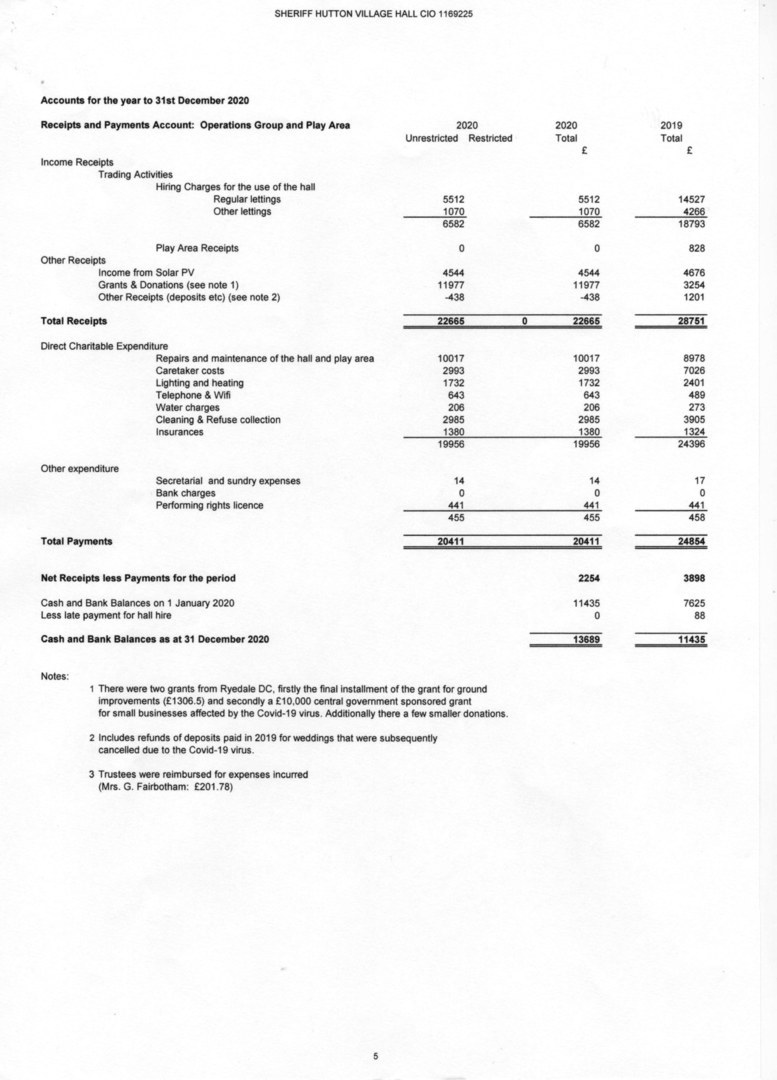 To download a copy of the Sheriff Hutton Village Hall CIO (Charity Incorporated Organisation) accounts for 2020 in portable document format (.pdf), please click on the link below.
